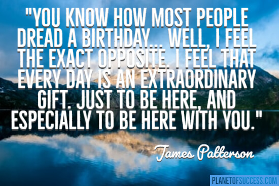 “You know how most people dread a birthday… Well, I feel the exact opposite. I feel that every day is an extraordinary gift. Just to be here, and especially to be here with you.”